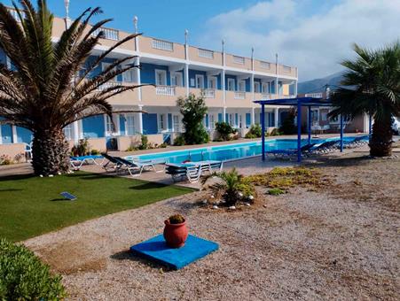 Dit hotel ligt in een rustige omgeving, maar het is de perfecte uitvalbasis om het Griekse eiland te ontdekken. Binnen een paar minuten sta je op het strand, waar je plaats kan nemen op de ligbedden die al voor je klaar staan. Vind je het fijner om aan het zwembad te liggen? Bij het zwembad van het hotel is het ook prima vertoeven. Speciaal voor de kleintjes is er in het zwembad een apart ondiep gedeelte. Tip, huur een auto zodat je alle plekjes van Karpathos kan ontdekken
