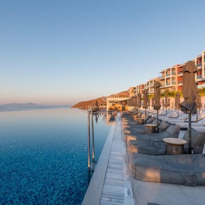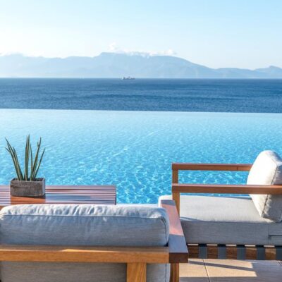 Luxueus 5 sterren hotel, Mooie en ruime infinity pool, Comfortabel ingerichte kamers, Loopafstand van het strand, Modern hotel in Griekse stijl, Veel welnessfaciliteiten & inclusief transfers.