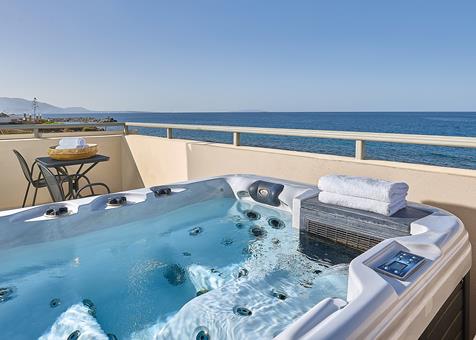 Gebouwd in Kretenzer stijl, Extra luxe? Boek kamer met jacuzzi, Vlak bij het leuke centrum, Ontspannen tijdens een massage, Direct aan zee, Onafhankelijk duurzaamheidslabel & inclusief transfers.