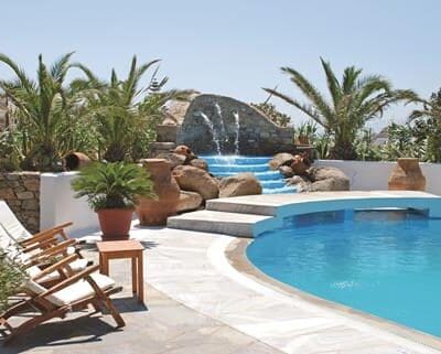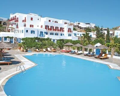 Dit hotel is ideaal voor de strandliefhebber. Dit hotel in Plati Yialos op Mykonos ligt namelijk tussen twee prachtige stranden in; het superluxe Plati Yialos en Psarou strand. Hier strijkt de jetset elke zomer neer en staan de luxe jachten en speedboten in de file om aan te mogen leggen. Een fascinerend spektakel! Gelukkig zijn er ook delen van deze stranden die niet zo luxe en duur zijn en waar het gewoon heerlijk en relaxt vertoeven is. Je kunt ook kiezen voor een relaxte dag aan het riante zwembad van dit hotel. Want tussen alle pracht en praal is het hotel een fijn familiehotel met mooie tuin en ruime kamers. Een zorgeloze vakantie vol zon, zee en lekker eten.