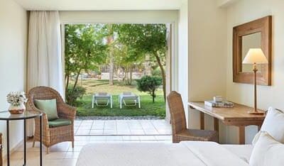 Een heldere zee voor de deur, heerlijk eten en fijne kamers. Dat klinkt als muziek in de oren. Je start je ochtend in Griekenland natuurlijk met een ontbijt aan zee, onder de olijfbomen. Daarna kies je voor een luxe ligbedje aan het zwembad of voor een van de hangstoelen. Pak je boek erbij en geniet. De kinderen hebben ondertussen plezier in de speelruimte.