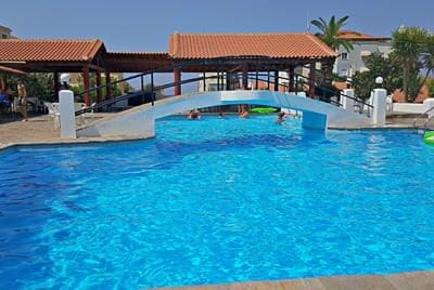 Traditionele appartementen, Gelegen tussen de bergen en de zee, Binnen no-time op het strand, Frisse duik in het zwembad, Proost vanaf de poolbar, Griekse gastvrijheid & inclusief transfers.