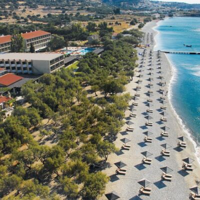 Dit hotel in Pythagorion mag gerust één van de betere hotels van Samos genoemd worden. Vanuit je kamer loop je zo het strand op en bij Beach Club Asterias lig je prinsheerlijk op je ligbed met extra dik matras. Echt even heerlijk ontspannen. Vergeet tijdens het relaxen geen lekker drankje te halen bij de beach bar. Ook het centrum van Pythagorion is op wandelafstand. De kamers zijn hip ingericht en van alle gemakken voorzien, voor een extra verwenmomentje boek je in de spa een heerlijke ayurvedische massage. Zo verschijn je helemaal zen bij het avondeten.