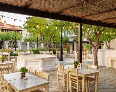 Slapen in moderne kamers, Met het strand voor de deur, Zo in het centrum van Pythagorion, Dorpsleven in 'The Village', Tijd voor jezelf in de spa, Onafhankelijk duurzaamheidslabel & inclusief transfers.
