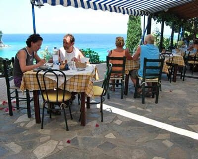 Prijstopper, Lekker kleinschalig, Prachtig uitzicht vanaf balkon, Vangst van de dag op je bord, Aan de baai van Tsamadou, Wandelen naar Kokkari & inclusief transfers.