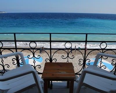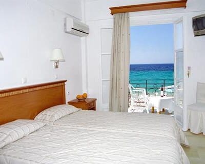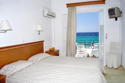 Hoor het ruisen van de zee, Direct aan het kiezelstrand, In het centrum, Prima hotel op een mooie locatie, Geweldig uitzicht over zee, Griekse gastvrijheid & inclusief transfers.