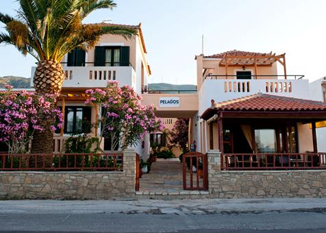 Met een warm Grieks ontvangst, verwelkomt de familie je in appartementen Pelagos. De appartementen zijn ruim, schoon en bevinden zich in een rustige omgeving aan de rand van Kambos met het strand bijna voor de deur. 's Ochtends kun je aanschuiven aan het ontbijt, voor de lunch maak je snel even wat in je appartement en voor het avond eten zijn er voldoende restaurantjes te vinden in het centrum voor een typisch Griekse maaltijd. Wil je meer van dit eiland zien? Huur dan een auto en ontdek het mooie Samos in je eigen tempo, zoals het bergdorpje Marathokampos op ca. 4 km afstand, de grot van Pythagoras of Manolates, het mooiste dorpje van Samos.