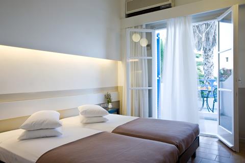 Kamari Beach is een fijne uitvalsbasis voor je vakantie op Santorini. Dit hotel met riant zwembad ligt aan de gezellige boulevard van Kamari. Terwijl je luiert bij het zwembad geeft het briesje wat verkoeling. Of sla je handdoek uit op het vulkanische strand. Je bent er zo. Voor extra verkoeling brengt de ober je favoriete cocktail. Dat is nog eens op je wenken bediend worden.