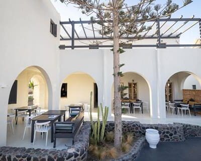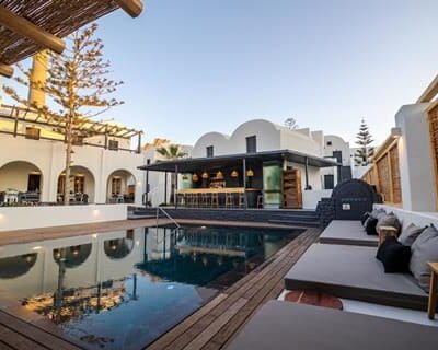 Dit hotel ligt aan de ruige kust van Santorini. De inrichting van het hotel is zeer sfeervol. De kleuren en accessoires matchen goed met elkaar en de kamers zijn met oog voor detail ingericht. Bij het kleine maar fijne zwembad breng je de warme dagen door. Al is een eilandtour of een dagje strand ook altijd een goed idee. Het hotel ligt vrijwel direct aan het strand, dus je bent snel bij de zee. Luister naar het geluid van de golven terwijl je de zonnestralen op je huid voelt. 's Avonds zijn de zonnestralen veranderd in mooie kleuren in de lucht tijdens de zonsondergang. Geniet!