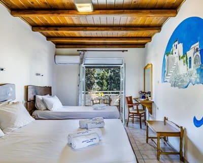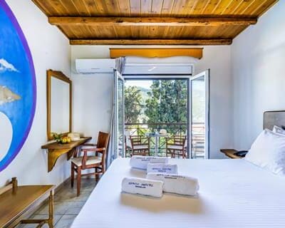 Kleinschalig, eenvoudig en pittoresk. Kies je voor dit hotel, dan is dat wat je krijgt. En dat past weer perfect bij dit idyllische eiland. De witte gebouwen zijn een mooi contrast met het blauwe water van het zwembad en de groene heuvels in de verte. En hoewel eenvoudig, dit hotel heeft een warme en comfortabele uitstraling. De hartelijke gastvrijheid maakt het af. Wandel vanuit Hotel Ionia naar de bedrijvige haven van de hoofdstad – de boten dobberen hier zij aan zee in het kalme water van de zee. Plof neer op een terras voor een glaasje ouzo en een salade en je wilt nooit meer naar huis.