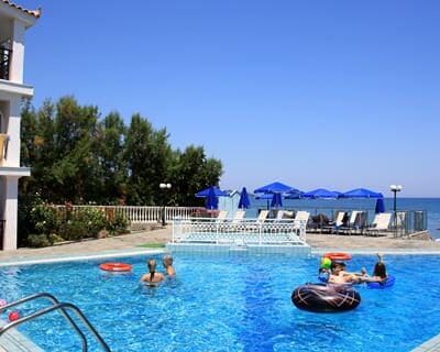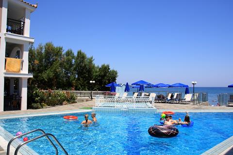 Favoriet van veel Nederlanders, Klein maar fijn en gemoedelijk, In ingetogen Zakynthos-stijl, Griekse gastvrijheid uit het hart, Hop van zwembad zo naar strand, Direct aan het zandstrand & inclusief transfers.