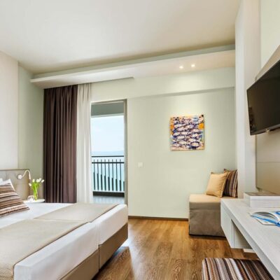 Een prachtig 5 sterrenhotel, dat is Ammon Zeus Luxury Beach. Met uitzicht op het helderblauwe water geniet je elke dag weer van je comfortabele ligbedje en spannende boek. Massage op het strand? Ook dat is mogelijk. Natuurlijk heeft het hotel ook een fitness en wellness. Na je workout sessie drink je een sapje in de Bio Healthy Bar en je kunt er weer tegenaan! 's Avonds sluit je aan bij het buffet, óf je probeert de visspecialiteiten in het à la carte restaurant.