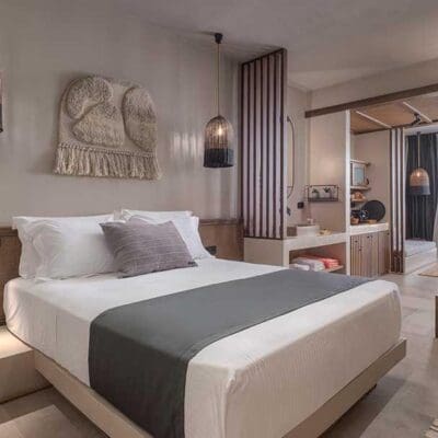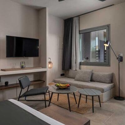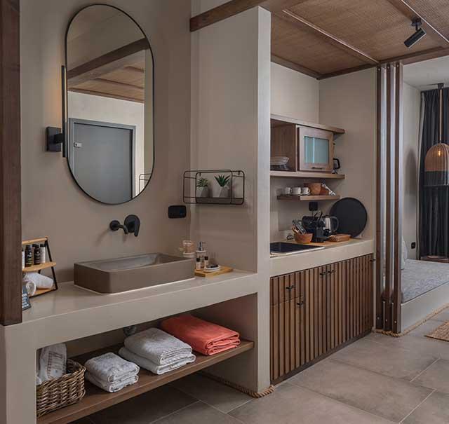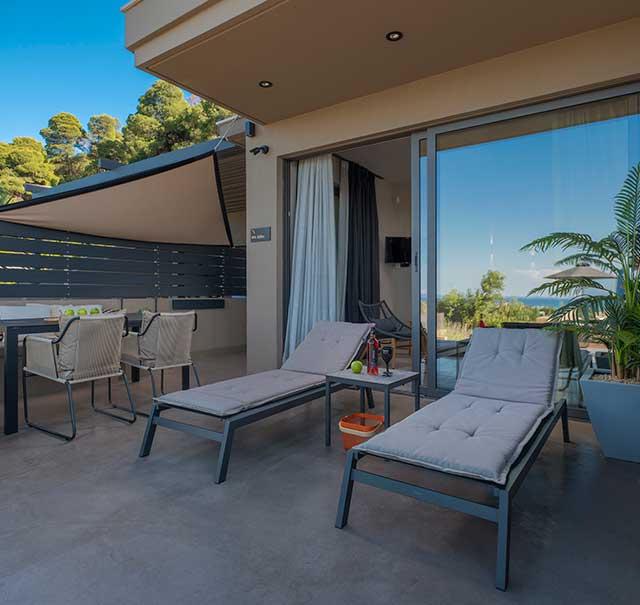 Het adresje is speciaal voor volwassenen. En eerlijk is eerlijk: stiekem is dat ook weleens fijn. Hier geen bommetjes in het zwembad, maar in rust een boek lezen op een ligbed en van het uitzicht over de baai genieten. Zalig toch? Wat ook zalig is, is het welkomstpakketje dat klaarligt op de kamer. Wat een ontvangst! Eigenaren Michalis en Annetta weten hoe ze hun gasten in de watten moeten leggen en daarom verwennen ze je graag met een flesje wijn en olijven bij aankomst. Zoals gezegd is dit adresje perfect om tot rust te komen: trek baantjes in het zwembad, doe een lesje yoga of trek je terug op je stijlvolle kamer. Heb je zin om eropuit te gaan? Ga dan met een boot de zee op en ontdek de grillige kustlijn en parelwitte stranden of bezoek badplaats Nikiti. Hier vind je leuke tavernes, bars, cafés en winkeltjes.