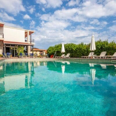 Aparthotel Skentos is een echt familiehotel, gelegen op schiereiland Kassandra, middenin het centrum van Kriopigi. Daarnaast is het ook nog eens een kleinschalig hotel, met authentieke accommodaties, wat zorgt voor een gezellige sfeer.
