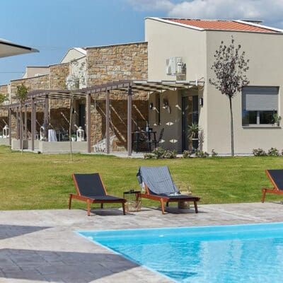 Deze stijlvolle hideaway in Chalkidiki combineert modern comfort met een uitzonderlijke ligging in de natuur. Kies je voor de Signature Villa, dan geniet je van een privézwembad met direct uitzicht op de wetlands – een droomplek voor natuurliefhebbers. De zeer ruime Panoramic Villa is perfect voor grote families en beschikt eveneens over een heerlijk privézwembad. De hoger gelegen suites delen een sfeervol zwembad, elk met een eigen terras voor een ontspannen moment onder de zon. De interieurs zijn modern, loftachtig en bijzonder comfortabel. Tussen oktober en mei is de kans het grootst om flamingo's, eenden en andere trekvogels te spotten – een paradijs voor fotografen. Buiten deze periode blijven de uitzichten op het landschap betoverend, de sfeer vredig en de gastvrijheid hartverwarmend.