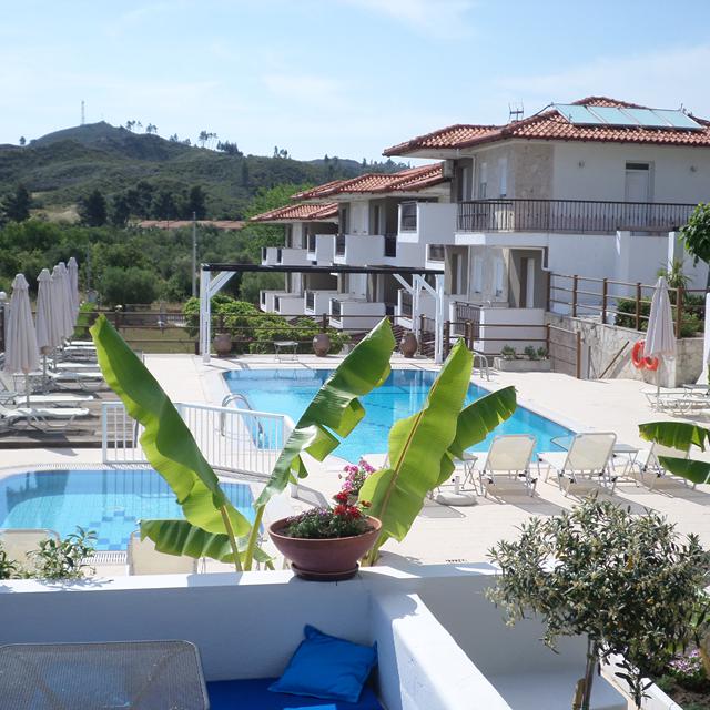 Aparthotel Ampelia ligt dichtbij het gezellige centrum van Hanioti en het zandstrand is na ongeveer 800 meter te bereiken. Na een kleine wandeling is niks zo fijn om verkoelende duik te nemen in het helderblauwe zeewater waar Chalkidiki zo bekend op staat! Terug in het hotel geniet je van fijne faciliteiten. De kamers hebben een balkon en hebben een uitzicht over de zee of de tuin.