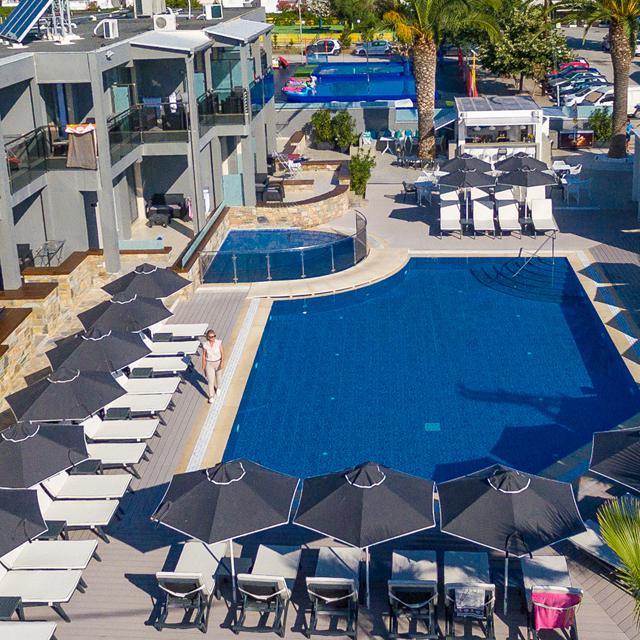 In het populaire vakantieplaatsje Hanioti ligt het ruimopgezette Aparthotel Dionyssos. De verschillende gebouwen bestaan uit twee verdiepingen en liggen in een mooie tuin. In deze tuin is ook het verkoelende zwembad met kinderbadje en poolbar te vinden. Het waanzinnig mooie zandstrand van Hanioti ligt op ca. 200 meter. Na een klein stukje lopen kun je dus al met je voeten in het helderblauwe water waar Chalkidiki zo bekend om staat staan. Het centrum is al even snel te bereiken.