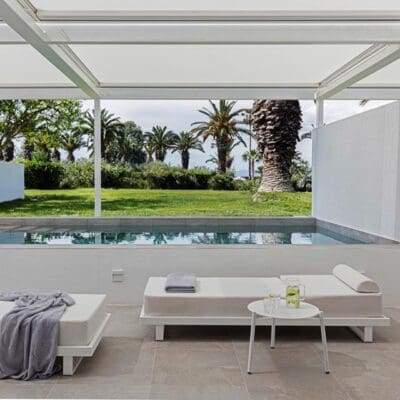 De hotelkamers en suites zijn elegant ingericht en voorzien van fijne faciliteiten. Stuk voor stuk bieden ze een goede nachtrust en zijn perfect voor wat quality time met elkaar. Er een keer op uit? Bezoek het karakteristieke centrum van Kriopigi, een gezellig kustplaatsje, waar je langs de traditionele stenen huizen wandelt en helemaal opgaat in de omgeving. Lekker even ontspannen na een enerverende dag kan in fantastische spa van het hotel. Het is maar moeilijk kiezen uit de lange lijst van heerlijke behandelingen.