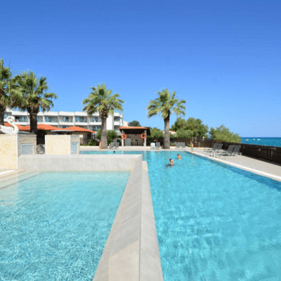 Hotel Sousouras heeft een geweldige locatie. Verblijf je in dit hotel dan geniet je van luie dagen aan het kristalheldere water van de Egeïsche Zee, verken je de betoverende straatjes van Hanioti en ontdek je pittoreske restaurantjes met de meest heerlijke Griekse gerechten. Neem af en toe een duik in het verkoelende zwembad terwijl je geniet van een prachtig uitzicht en een heerlijke vakantie.