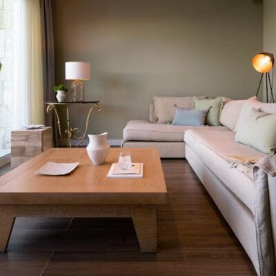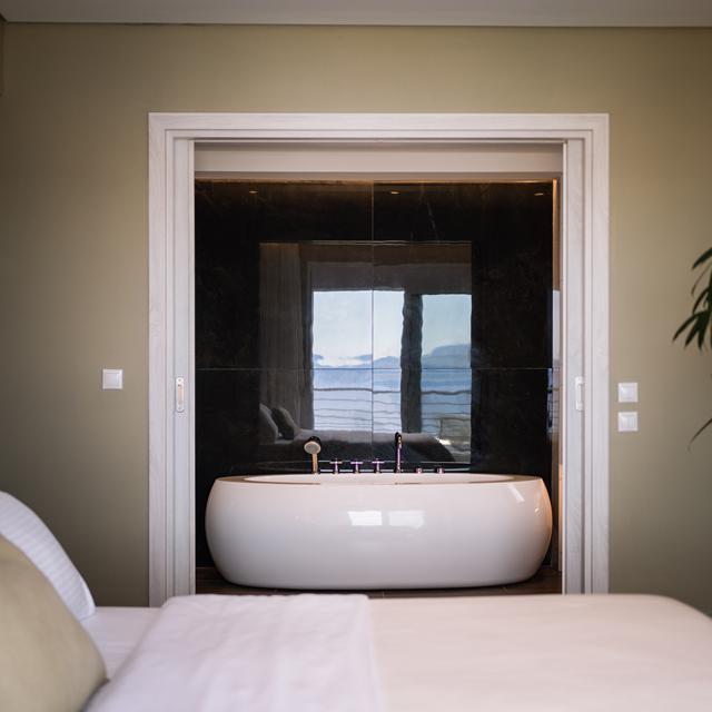 Nu ben ik helemaal nieuwsgierig! En zodra we aankomen bij Kappa Villas & Suites weet ik het meteen: hier wil ik inderdaad blijven. Mijn suite heeft een privézwembad en de inrichting is modern en luxe. “En als je even genoeg hebt van het zwembad, sta je binnen enkele stappen met je voeten in de zee.” Stilletjes kijk ik om me heen. We zijn echt ontsnapt aan alle drukte, precies zoals Georgios had beloofd.