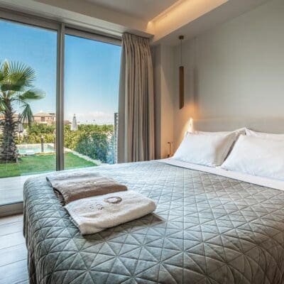 Oikos Sani Suites ligt op een rustige locatie aan de rand van het chique Sani Beach, omgeven door dennenbossen en met uitzicht op Sani Forest. De suites zijn stijlvol en modern ingericht, met oog voor comfort en privacy. Dankzij de kleinschaligheid voelt het aan als een geheim adresje dat je alleen met je beste vrienden wilt delen. Iedere suite heeft een eigen terras of balkon, sommige zelfs met privézwembad. Kyriaki ontwierp de suites met het idee dat schoonheid zit in eenvoud: natuurlijke materialen, warme kleuren en veel licht. Haar visie? “Een plek waar je de tijd vergeet. Waar de dag vanzelf traag en ontspannen aan je voorbijglijdt.” En dat is precies wat Oikos zo bijzonder maakt.