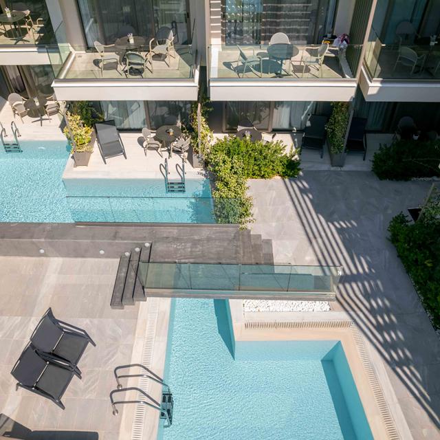 Luxe, moderne suites;Knusse sfeer op een rustige plek;Geniet bij het zwembad