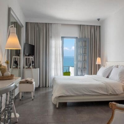In totaal heeft dit fijne adresje 14 luxe suites met een moderne uitstraling. Wit is de basis in het interieur, net als het uitzicht over de turquoise zee. Op een plek als deze, wil je niets liever dan de hele dag met je blote voeten in het zand lopen. Daarom speelt alles zich af op en rondom het strand. Neem een duikcursus of vaar de kustlijn af met een zeilboot of geniet bij de Lime beach bar. Dit is de plek om lekker onderuit te zakken op zachte banken en ligbedden en te genieten van ijskoude drankjes en muziek. Laat je ook culinair verrassen in Moudounou Restaurant. Reserveer een tafeltje, zie de mooiste zonsondergang en proef gegrilde vis en authentieke mezes; het is hier heerlijk!