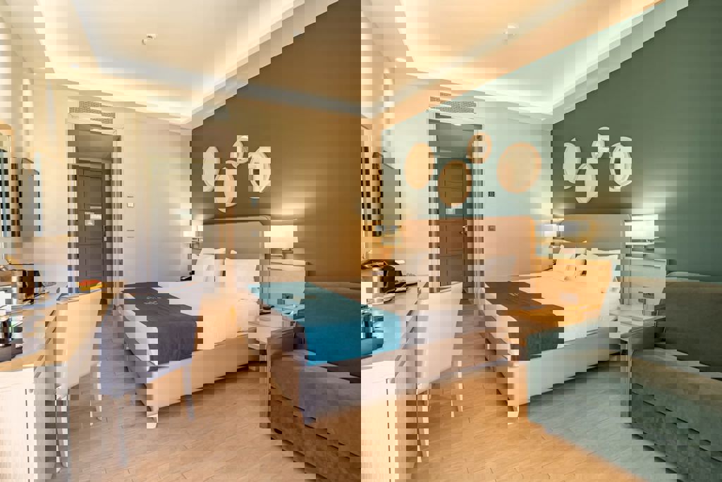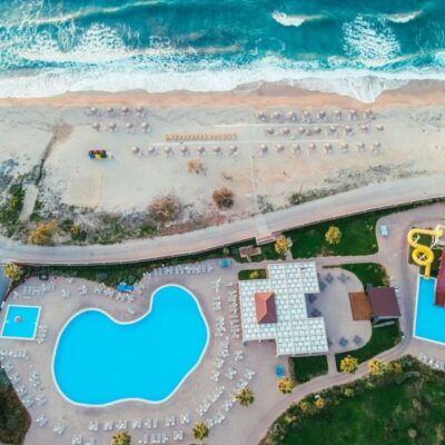 Almyros Beach Resort & Spa is een 5-sterren all-inclusive resort waar luxe en comfort samenkomen. Gelegen aan de idyllische noordkust van Corfu, net buiten het levendige centrum van Acharavi, is dit de perfecte plek voor een onvergetelijke vakantie. Of je nu kiest voor ontspanning aan het strand, plezier met het gezin, of een actief uitje, hier vind je alles wat je nodig hebt. Met meerdere zwembaden, een uitgebreid spa- en wellnessaanbod, sportfaciliteiten en culinaire hoogstandjes in het buffet- en à-la-carterestaurant, is er voor iedereen iets te beleven. Geniet van het adembenemende uitzicht, de warme sfeer en de Griekse gastvrijheid die je verblijf onvergetelijk maken.