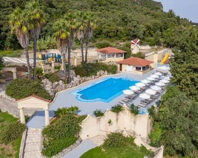 Typische Griekse gezelligheid, Prachtig uitzicht op zee, Omgeven door groen, Relaxen bij het zwembad, Samen van de glijbaan, Entertainment voor jong en oud & inclusief transfers.