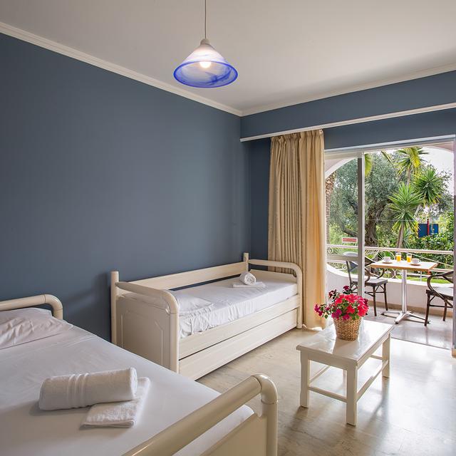 Rondom het zwembad is het altijd goed vertoeven. Er zijn gratis ligbedden en parasols beschikbaar, dus je kunt zorgeloos genieten van het zonnetje. Bij de bar kun je terecht voor een (Griekse) maaltijd, een drankje of een ijsje. Dit alles in een verzorgde en groene omgeving. Wil je wat meer van de omgeving zien? Het eiland heeft ontzettend veel moois in petto en met een huurauto kun je de beste plekjes bereiken.