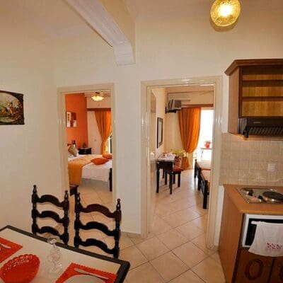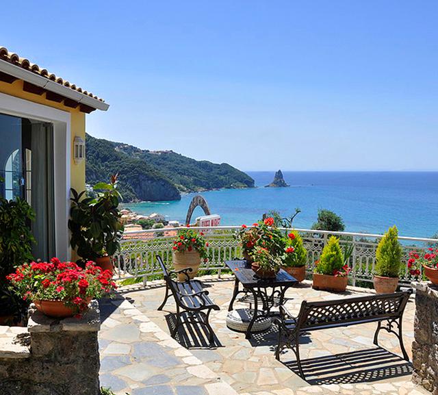 Appartementen Mazis ligt bij het plaatsje Agios Gordios en is omringd door bergen en zee. Door de hogere ligging heb je vanaf het terras een prachtig uitzicht over de Ionische Zee! Het strand ligt op zo’n 400 meter van de appartementen en op loopafstand vind je gezellige restaurants en bars.