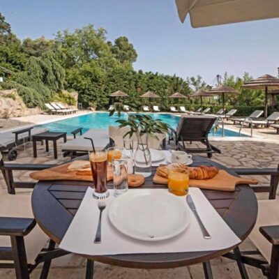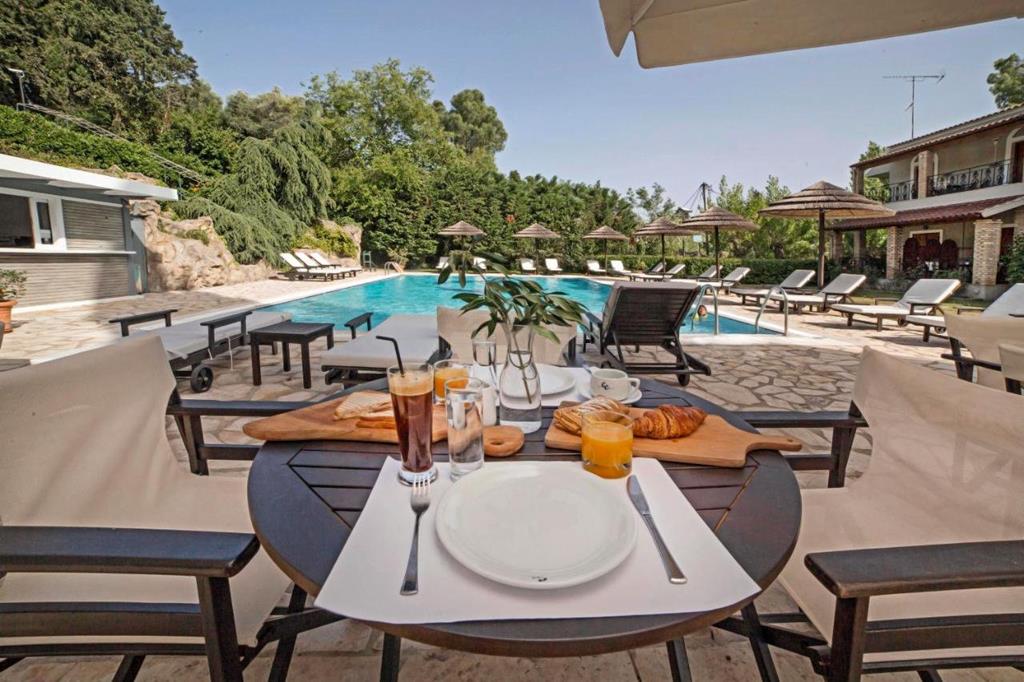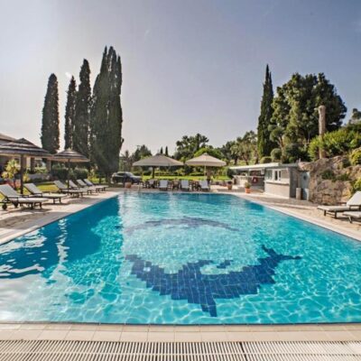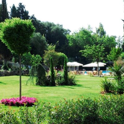 Speeltuin in de schaduw, Ontbijten op het ruime balkon, Huur een auto en ontdek Corfu, Neem een verfrissende duik, Wandel door de kleurrijke tuin, Duik zo het zwembad in & inclusief transfers.