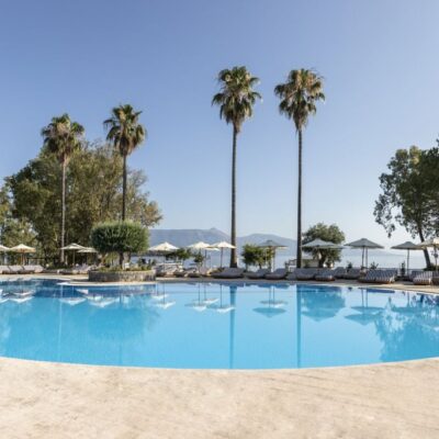Kerkyra Blue op Corfu is zo'n plek waar alles klopt. Aan de kust van Alykes Potamou geniet je van een heerlijke mix van comfort, gastvrijheid en mediterrane charme. Het resort voelt als een Grieks dorp, met witgekalkte gebouwen, lagunevormige zwembaden en uitzicht op de groene bergen van Corfu. Of je nu met je gezin, partner of vrienden reist, hier doe je alles op je eigen tempo. Begin de dag met een verse koffie aan het zwembad, geniet van de zon aan zee en laat je daarna verrassen door de heerlijke gerechten in het à-la-carterestaurant. Overdag is er volop ruimte voor ontspanning én plezier. Kinderen vermaken zich bij de miniclub of in het kinderbad, terwijl jij ontspant op een ligbed aan het strand of een verfrissend drankje haalt bij de poolbar. Liever wat actie? Doe mee met een sportieve activiteit of ontdek het levendige Corfu-Stad, op slechts 10 minuten rijden. 's Avonds keer je terug naar de rust van het resort, waar de sfeervolle verlichting en de geluiden van de zee zorgen voor dat echte vakantiegevoel.