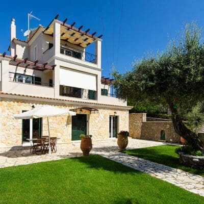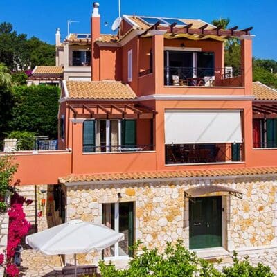 "Is dat allemaal voor mij?" Ik sta voor mijn terracottakleurige villa, een van de drie schoonheden van Il Tesori Dassia Villas van Yiannis en Efi Papadopoupou. Yiannis lacht. Ik voel een staat van groot geluk opborrelen. Ik zie drie terrassen en een privézwembad in de zon.