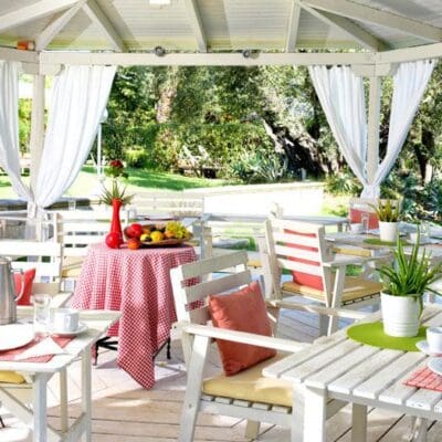 Langzaam word ik wakker en kijk om me heen. De kussens liggen heerlijk en de palmbomen wuiven zacht. De citroenen en de bloemen groeien in de zon: alles is mooi hier bij Isabella Country House. Het huis is omgeven door een grote bloeiende tuin, de verblijven zijn rustiek en romantisch. Rustig sta ik op en neem een duik in het zwembad.