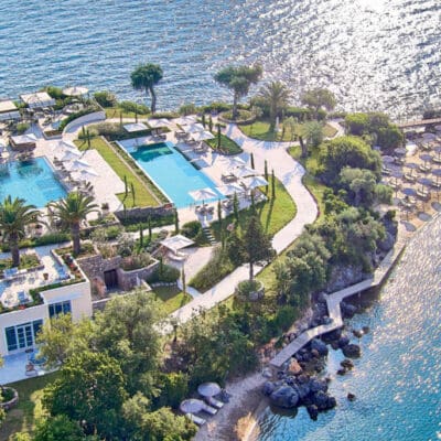 Verscholen aan de kust van Corfu vind je het Corfu Imperial, a Grecotel Resort to live op Kommeno Peninsula, een prachtig hotel omgeven door een groene tuin. Het hotel geeft een unieke locatie op het uiterste puntje van het schiereiland Kommeno, de mooiste ligging van alle hotels op Corfu! De privéstranden bieden een rustige plek om de dag door te brengen, met de kalmerende geluiden van de zee als achtergrondmuziek. In het hotel kun je genieten van drie buitenzwembaden, elk met een betoverend panoramisch uitzicht op de zee. Je kunt in de avond kiezen uit een scala aan eetmogelijkheden: vijf restaurants die een mix van lokale en internationale gerechten serveren, passend bij elke smaak. De vier bars van het hotel zijn ideaal voor een ontspannen drankje, of het nu gaat om een vroege koffie of een avondcocktail. Corfu Imperial, a Grecotel Resort to live at Kommeno Peninsula is een goede keuze voor je welverdiende vakantie! Dus waar wacht je nog op?