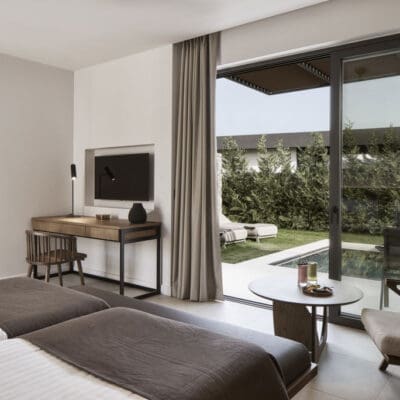 Welkom bij The Olivar Suites, een rustig toevluchtsoord op het betoverende Corfu, direct aan het strand en op slechts 200 meter van het schilderachtige Messonghi. Het hotel biedt een mooi zwembad met uitzicht op de glinsterende zee, waar je een verfrissende duik kan nemen. In het restaurant kun je genieten van diverse gerechten, van lokale lekkernijen tot internationale favorieten. The Olivar Suites biedt ook fitnessfaciliteiten voor diegenen die hun actieve levensstijl willen behouden tijdens hun vakantie. De accommodaties, prachtige suites, bieden een comfortabel toevluchtsoord na een dag vol ontdekkingen of ontspanning. Of je nu de smalle straatjes van Messonghi wilt verkennen, wilt ontspannen bij het zwembad of je handdoekje wilt uitrollen op het strand, The Olivar Suites biedt de perfecte uitvalsbasis voor een aangenaam verblijf op het Griekse eiland Corfu.