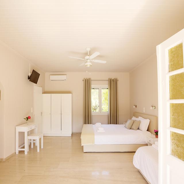 Overnachten doe je hier in een van de ruime studio’s of appartementen. Ze zijn basic ingericht en voorzien van een keuken, badkamer en een zonnig balkon of tuintje. Heerlijk om hier ’s morgens de dag te beginnen met een lekker kopje koffie. Houd je net als ik ook zo van de Griekse keuken? Dan zit je hier helemaal op je plek: op 200 meter vind je het centrum van Roda met een aantal sfeervolle tavernes. Probeer elke dag een nieuw restaurantje uit en proef de lokale specialiteiten die op het menu staan. Aanrader is de Pastitsada (vlees in rode saus met pasta). Liever zelf kokkerellen? Steek dan de barbecue aan in de tuin en geniet er van een lange, zwoele zomeravond.