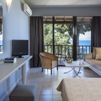 Aan de zuidkust van het Griekse Corfu vind je het Aeolos Beach Resort. Dit grootschalige vakantie paradijs heeft alles wat jij nodig hebt voor echte relaxvakantie. Ruime kamers en bungalows, 3 zwembaden, een luxe spa en maar liefst 3 à-la-carterestaurants. Begin je dag met een ontbijtje in de zon, neem een duik in het zwembad of maak een wandeling naar het strand voor een ijsje of wafel en geniet 's avonds van de livemuziek en het entertainment. Je verblijft in Aeolos Beach Resort op basis van All Inclusive en komt niks te kort. Ontbijt, lunch en diner staan in buffetvorm voor je klaar en wil je een avondje optimaal genieten kies dan uit een van de à-la-carterestaurants voor een maaltijd met ingrediënten uit de streek. Sportieve vakantiegangers slaan een balletje op de tennisbaan of doen mee aan aquarobics. De omgeving van het hotel leent zich ook prima voor een stevige wandeling richting het centrum van Benitses.