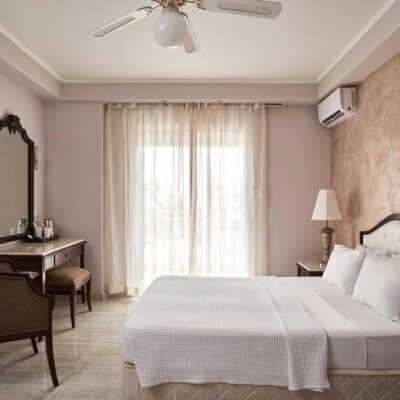 Lage gebouwen tussen groene tuinen en fijne loungehoeken creëren meteen een ontspannen sfeer. Er is keuze uit verschillende kamers van eenvoudige tuinzicht tot ruime familiekamers en suites. Meerdere zwembaden met glijbanen zorgen voor waterpret, en je vindt genoeg ligbedden om de hele dag te relaxen. Eten regel je precies zoals je wilt. Schuif aan bij het uitgebreide buffet voor alle maaltijden, proef de à la carte Italiaanse of Griekse keuken, haal een snelle hap bij de bars rond zwembad en strand, of smul van een ijsje bij de gelateria. 's Avonds lounge je, doe je mee aan animatie of geniet je simpelweg van de zonsondergang. Niets moet, alles mag in dit stukje paradijs.