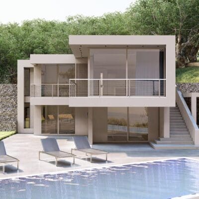 De villa is ontworpen met zowel comfort als duurzaamheid in gedachten. Gebouwd met lokaal gewonnen materialen en uitgerust met milieuvriendelijke technologieën, biedt deze villa alle moderne gemakken die je kunt wensen. De ruime kamers zijn stijlvol ingericht en de grote ramen geven een prachtig, ononderbroken uitzicht op zee en het gouden strand van Kontogyalos. Buiten omringt de wilde lokale natuur de villa en nodigt uit tot ontspannen wandelingen.