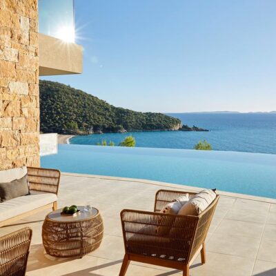 Bovenop een met pijnbomen begroeide heuvel vind je dit prachtige hotel. Vanaf het zwembad heb je spectaculair uitzicht op de zee en de omliggende bergen. Het strand bereik je via een kabelbaan. Maar de sportievelingen kunnen natuurlijk het pad naar beneden nemen. Het kristalheldere water komt steeds dichterbij. Neem een lekkere duik en geniet daarna van een drankje in de strandbar. Terug boven smul je van een smakelijk diner in een van de restaurants en geniet je van de zonsondergang. Je wilt nooit meer naar huis!