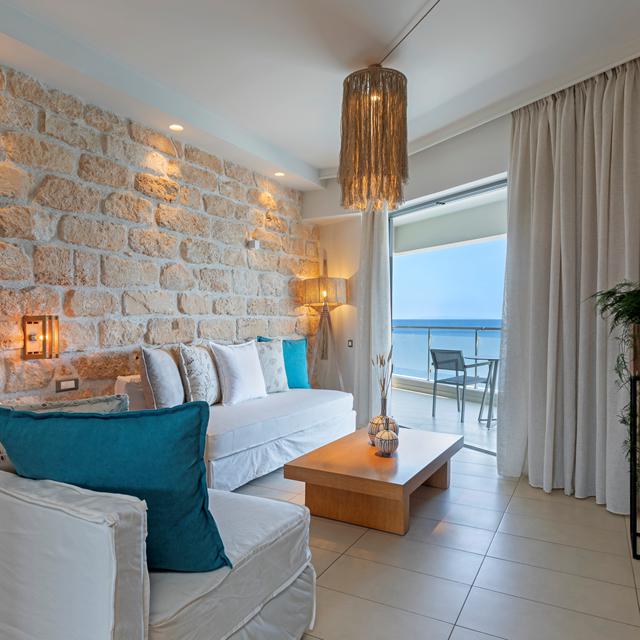 De zachte bries van de Egeïsche Zee danst over mijn huid terwijl ik neerplof op een zonbed bij het zwembad. In de verte hoor ik het kabbelende geluid van de golven op het rotsstrand, op slechts een steenworp afstand. Ik nip van mijn ijskoude cocktail en glimlach naar het warme personeel dat voelt als familie. Hier, tussen zee en bergen, net buiten het charmante Karystos, voelt alles vanzelfsprekend licht en comfortabel. 's Ochtends geniet ik van versgebakken broodjes en biologische lekkernijen in de zon, en 's avonds schuif ik aan in het à-la-carte restaurant. Alles klopt. Alles voelt als thuiskomen, maar dan met een vleugje luxe.