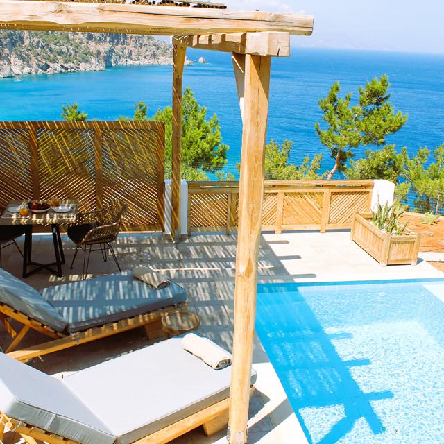 Adults only (18+);Wegdromen bij het privézwembad;Licht en fris ingericht;Heerlijk uitzicht op zee;Een romantische getaway