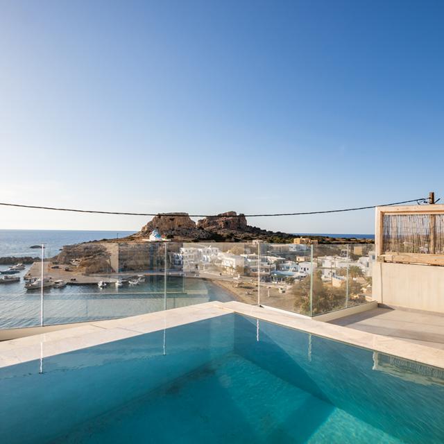 Dit beeldschone adresje ligt in Finiki, aan de westkust van Karpathos. Een plek niet ver van alle paradijselijke stranden en op slechts een half uurtje rijden van de sfeervolle hoofdstad. Vanuit hier kun je ook mooie uitstapjes maken naar pittoreske bergdorpjes. Maar lekker even nietsdoen, is op een plek als deze ook zeker geen straf! Geniet van een verfrissende duik met de zee op de achtergrond, nestel je in een comfortabel ligbed met een spannend boek en een lekker drankje. En als je zin hebt in een typisch Griekse maaltijd loop je naar de baai beneden. In het sfeervolle haventje van Finiki eet je de lekkerste verse vis!