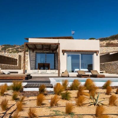 Het voelde als een klein geheimpje dat alleen ik mocht ontdekken, verscholen in het ruige landschap van Karpathos: AMMOO. Wat een droomplek! Alles hier ademt rust, stijl en aandacht. George, de eigenaar, heeft dit adults only paradijsje met liefde ontworpen en dat voel je aan alles. Vanaf mijn ligbedje aan het privézwembad – met bubbelstand, natuurlijk – kijk ik uit over de zee, die elke avond verandert in een schilderij. Binnen is het al net zo fijn: licht, ruim en perfect afgewerkt. Met het kussenmenu slaap ik als een roos, en na een verfrissende buitendouche begin ik mijn dag met een glimlach.