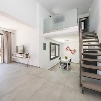 Wanneer ik arriveer bij Askelinos Villas ben ik sprakeloos. Soms zijn er van die speciale adresjes die al je verwachtingen overtreffen. Wat een juweeltje! Nadat ik mijn auto geparkeerd heb, loopt eigenaar Antonios met mij mee naar mijn villa. Na jaren te gewerkt te hebben in het familiehotel in Pigadia, besloot Antonios voor zichzelf te beginnen. Op het mooie landgoed van de familie, dat vol staat met olijfbomen en een waanzinnig uitzicht biedt op de baai van Amopi, ontwierp hij Askelinos Villas.