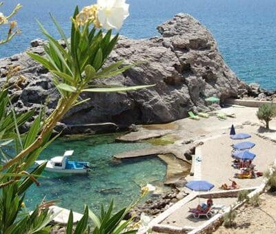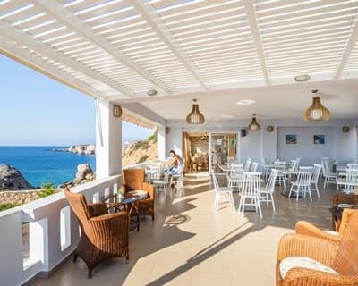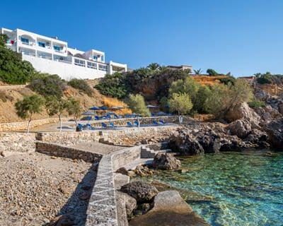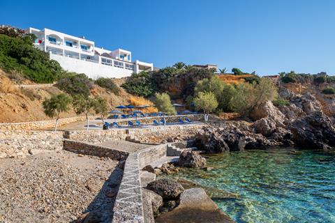 Kleinschalig hotel, Typisch Griekse stijl, Geweldig uitzicht, Direct aan een klein strand, Zowel eigenaar als kok, Persoonlijke service & inclusief transfers.