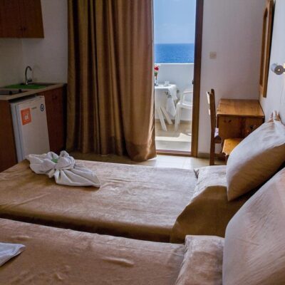 Het traditionele hotel Krinos, geleid door een Grieks gezin, kijkt uit over de zee en straalt een vriendelijke atmosfeer uit. Dit aparthotel vlakbij de mooiste baai van Lefkos is simpel ingericht maar wordt met liefde gerund. Zo verbouwt de familie hun groente zelf en dit is dan ook te proeven tijdens het ontbijt. Laat je verrassen door de vele Griekse lekkernijen. Kali Orexi!