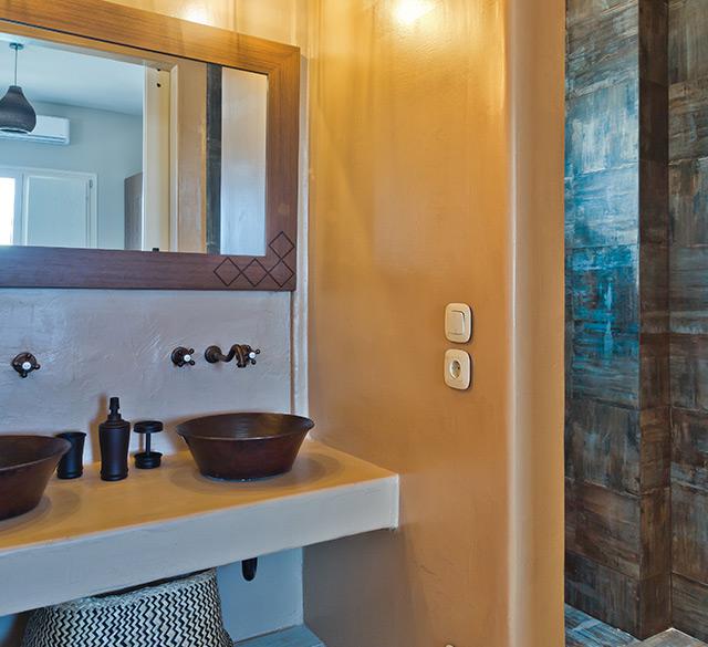 Na het doen van de boodschappen voor één van mijn favoriete Griekse gerechten, geniet ik nog even van het indrukwekkende uitzicht vanaf mijn eigen privézwembad met infinity pool. Een frisse plons en later trek ik me terug in het knusse witte keukentje. De frisse suite is één grote open ruimte, met als blikvanger een witte boog die je naar je slaapkamer brengt.